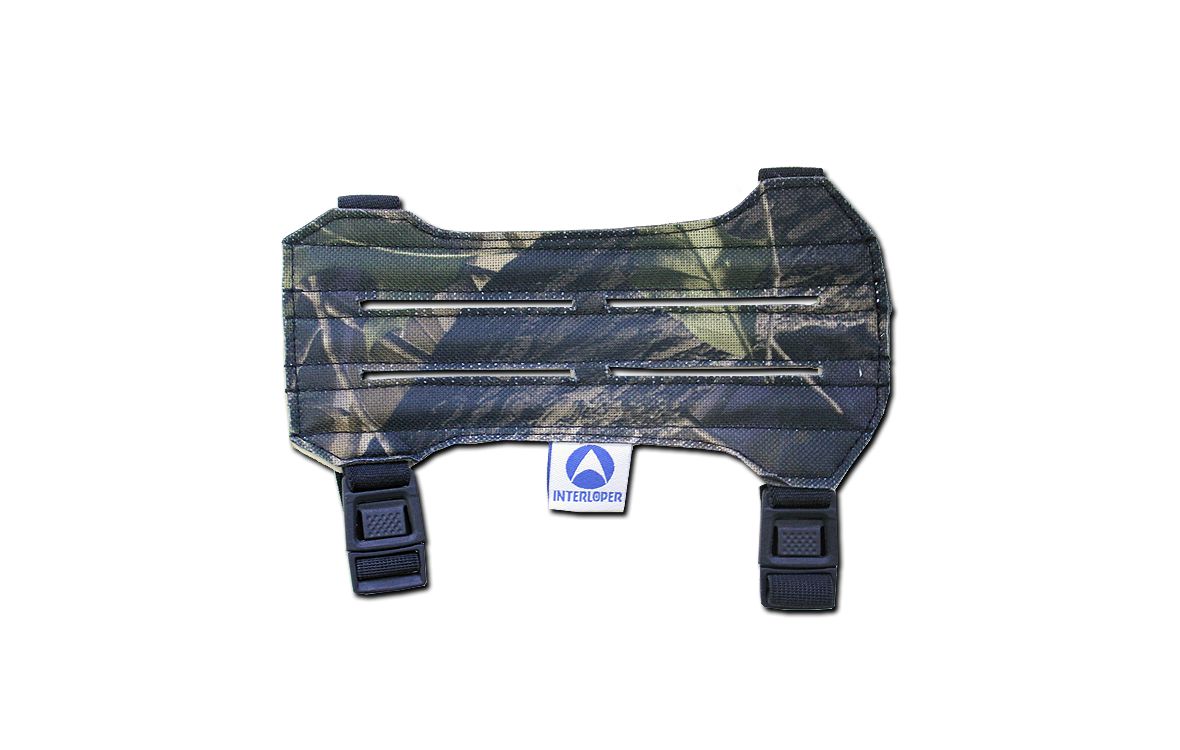 Крага из камуфлированой эко-кожи с рембрами жесткости для ношения при стрельбе из блочных луков. Крепится на карабинах.