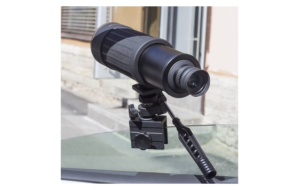 Штатив авто, целесообразно применять при наблюдении из салона автомобиля, легко устанавливается на боковое стекло. Возможно использование на любых вертикальных, относительно тонких, до 12 мм, поверхностях. kon 6–100×100 LT (с прямым окуляром).