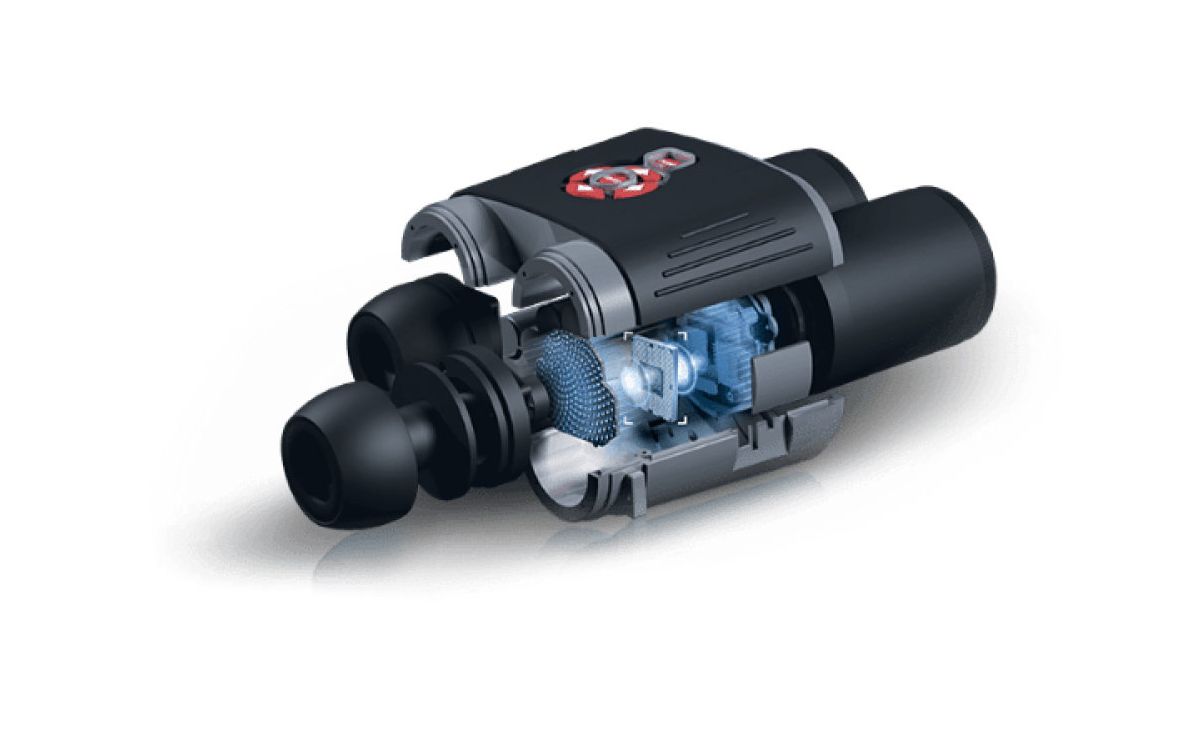 Основным чувствительным элементом бинокля ATN BinoX-HD является цифровая CMOS-матрица с высоким разрешением и чувствительностью продленной в ИК-область спектра. Матрица преобразует световое изображение построенное на ее поверхности светосильным объективом в цифровой сигнал, который мгновенно обрабатывается двухядерным 32nm ARM процессором с частотой 1ГГц. Процессор сжимает изображения и видеофайлы, а так же управляет набором датчиков реализующих поистине огромный функционал бинокля ATN BinoX-HD. Обработанное цифровое изображение отображается на двух цветных дисплеях с разрешением 960х540 воспроизводящими 4,2 миллиона цветов и 256 уровней палитры.