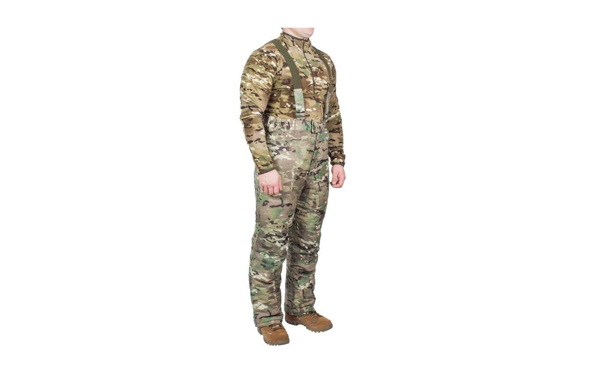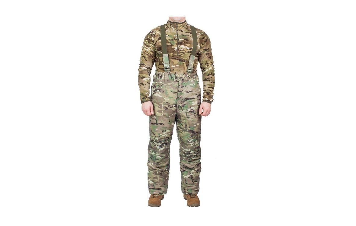 Брюки на утепленной подкладке. По верхнему краю закреплены паты для крепления ПРС. На передних половинках брюк имеются усилительные накладки в области колен. В боковых швах брюк расположены «молнии», расстегивающиеся на всю длину.