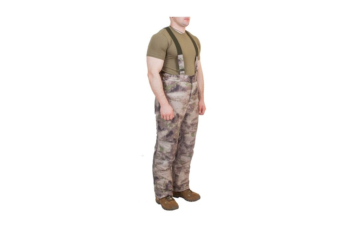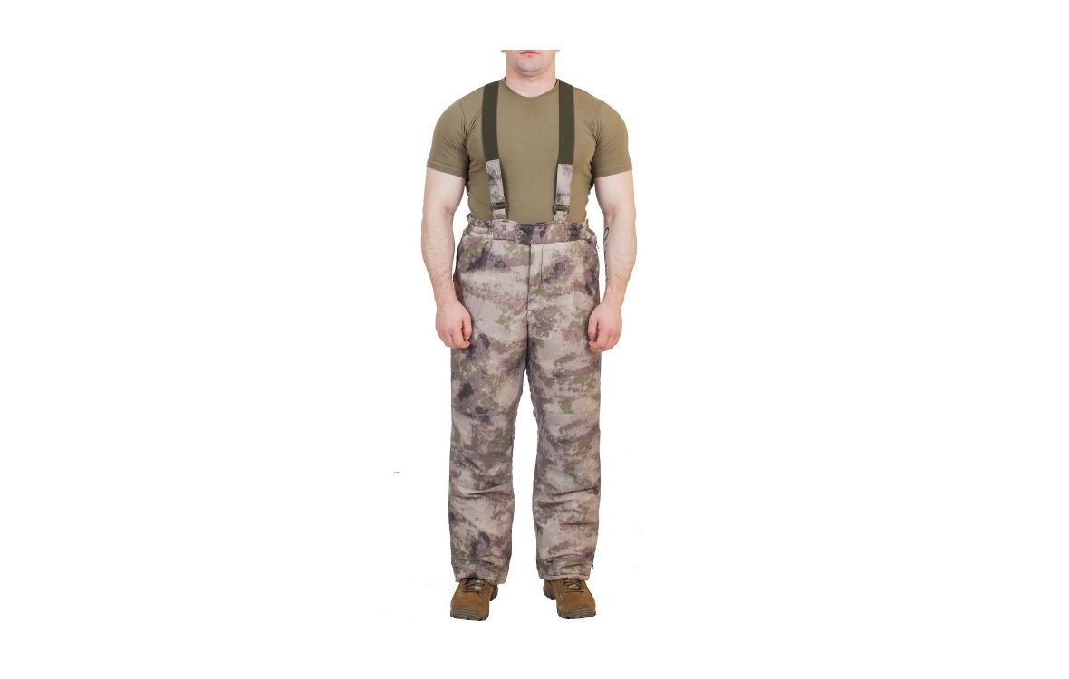 Брюки на утепленной подкладке. По верхнему краю закреплены паты для крепления ПРС. На передних половинках брюк имеются усилительные накладки в области колен. В боковых швах брюк расположены «молнии», расстегивающиеся на всю длину.