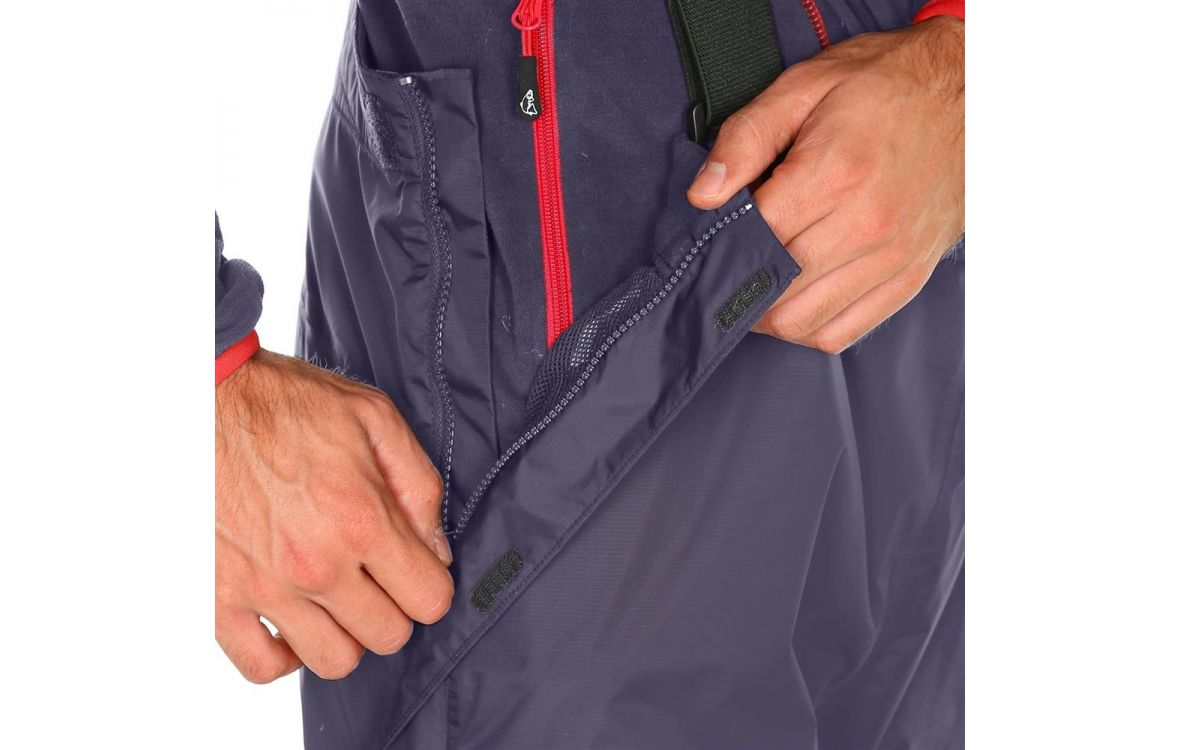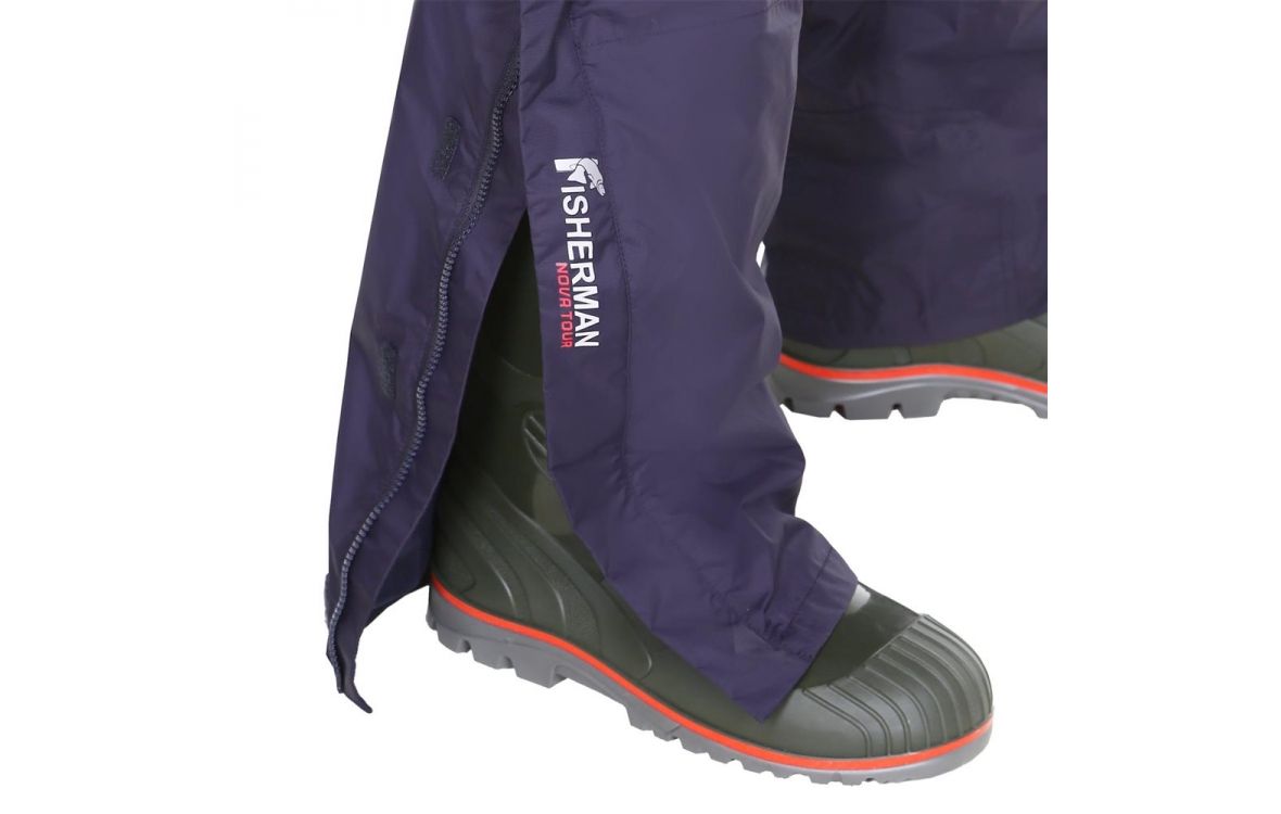 Дышащая мембранная ткань, проклеенные швы, анатомический крой в области колена, регулировка ширины низа брюк. (только молния, нет утяжки)