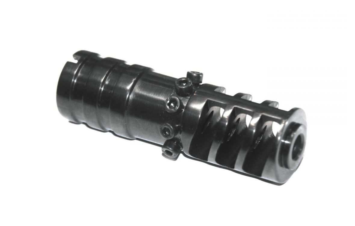 Стенки открытых камер дульной насадки на Сайга-МК Федерал расположены под углом и пороховые газы при ударе придают импульс, который значительно уменьшает отдачу и подскок оружия вверх. В конструкции предусмотрена возможность настройки компенсации бокового увода оружия при помощи регулируемого газосброса. Вы сможете идеально подстроить оружие под себя и применяемый патрон.