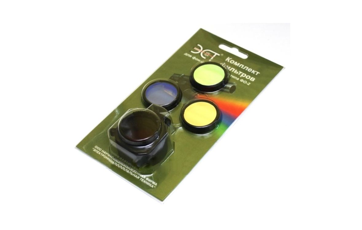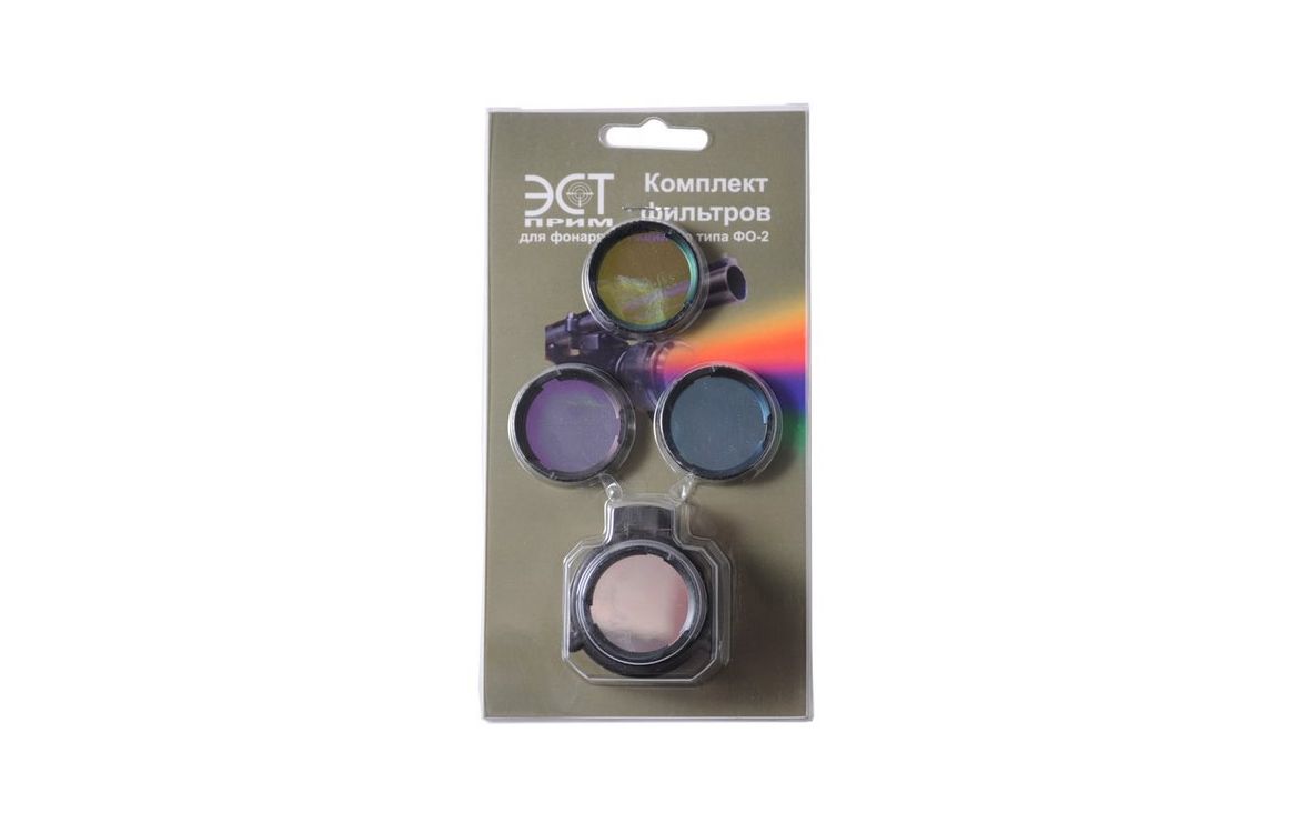 Комплект фильтров для фонарей ФО-2 (ЭСТ) применяется для установки на подствольные оружейные фонари производства ОО «ЭСТ» ФО-2 всех моделей (ФО-2М/ФО-2М-1, ФО-2L/ФО-2L-N). Включает в себя основной набор необходимых по цвету светофильтров, а также откидную крышку для фонаря (посадочный диаметр 40 мм). Красный фильтр может применяться в качестве сигнального (различимость данного цвета до 3 км). Также данный цвет наименее пугает животных и может применяться во время охоты. Минимальную заметность дает синий цвет фонаря, который получается при использовании соответствующего фильтра.
