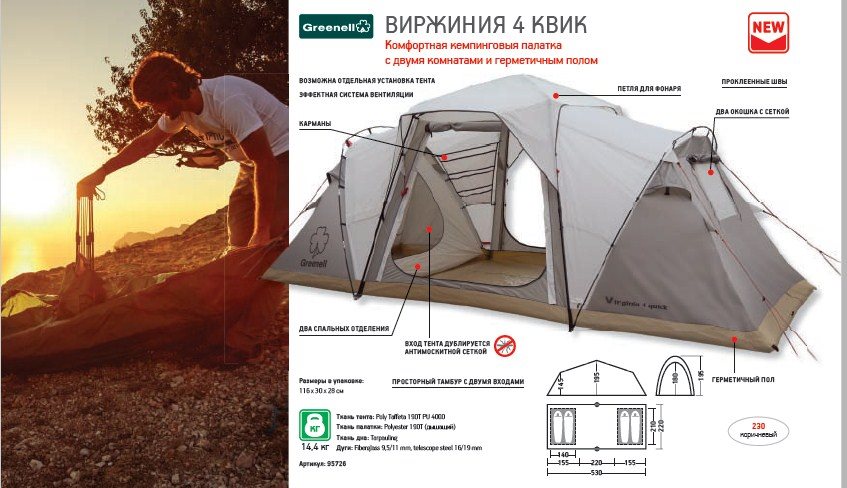 - Количество местКоличество человек, на проживание которых расчитана палатка. 4