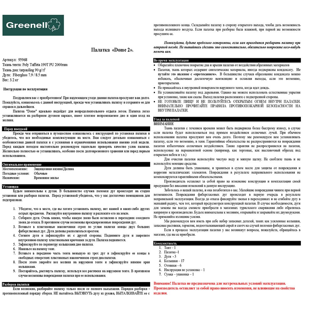 - Материал тентаТкань, из которой изготовлен тент палатки. Polyester 190T PU 2 000