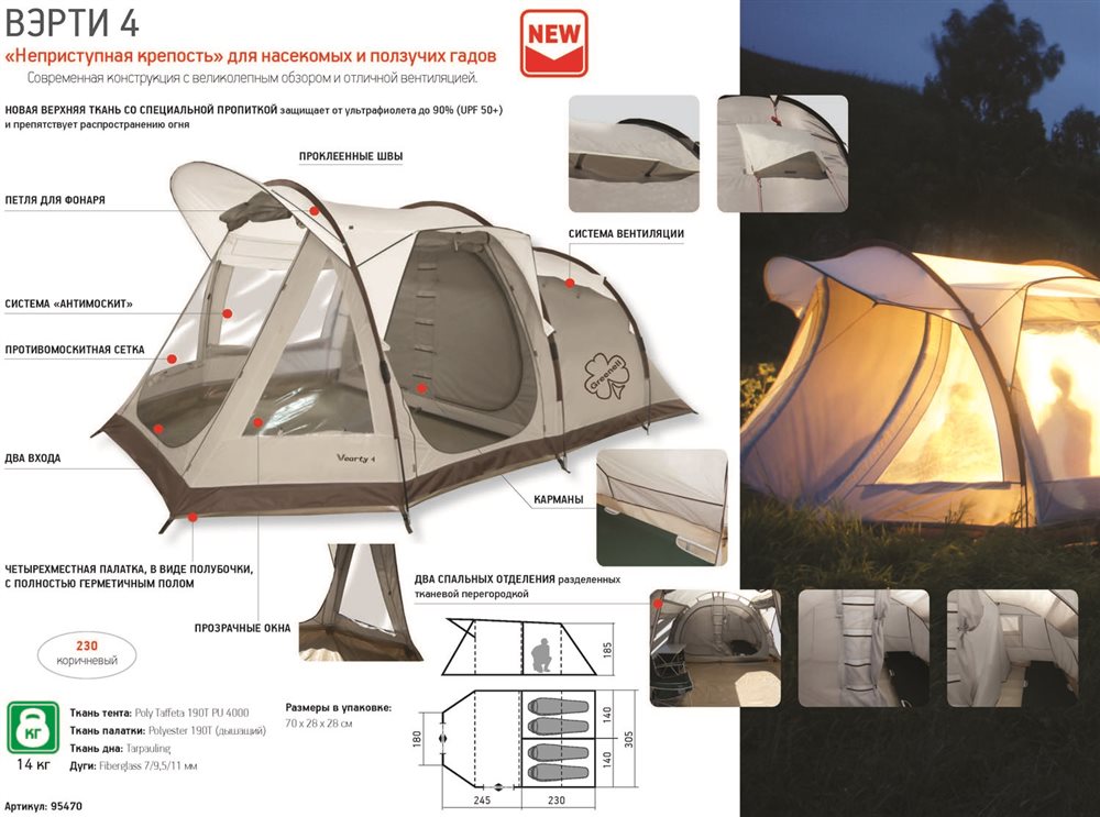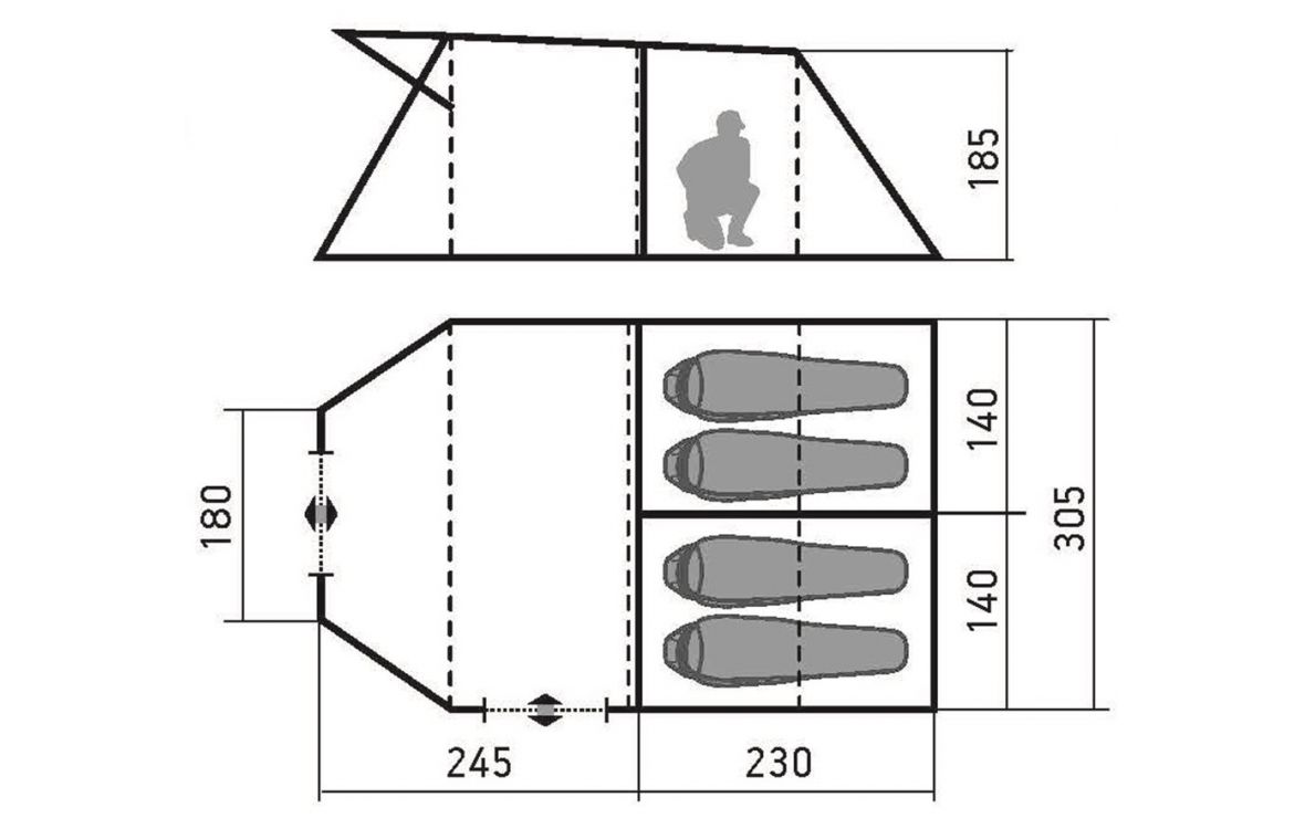 - Количество местКоличество человек, на проживание которых расчитана палатка. 4