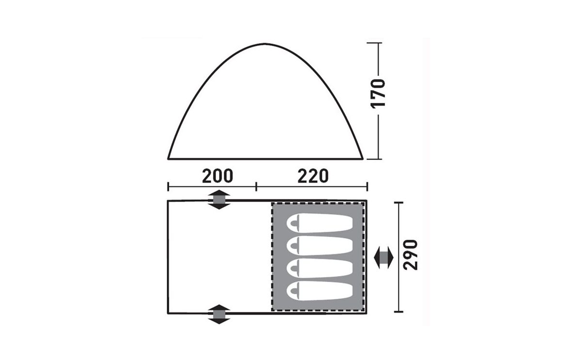 - Количество местКоличество человек, на проживание которых расчитана палатка. 4