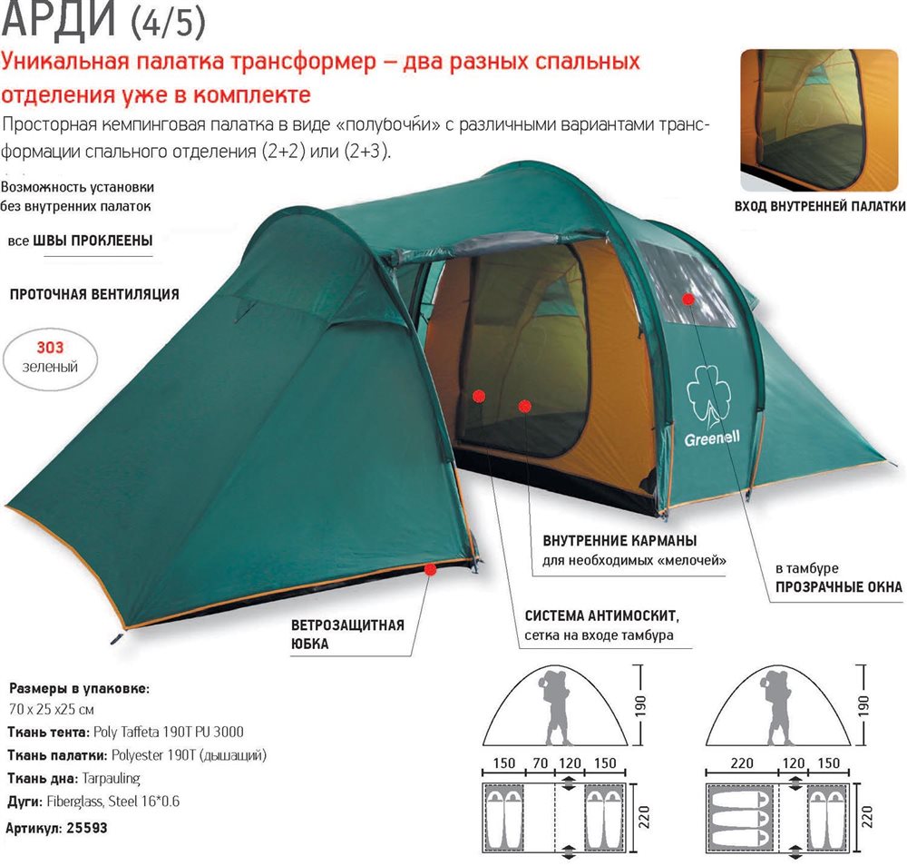 - Количество местКоличество человек, на проживание которых расчитана палатка. 5