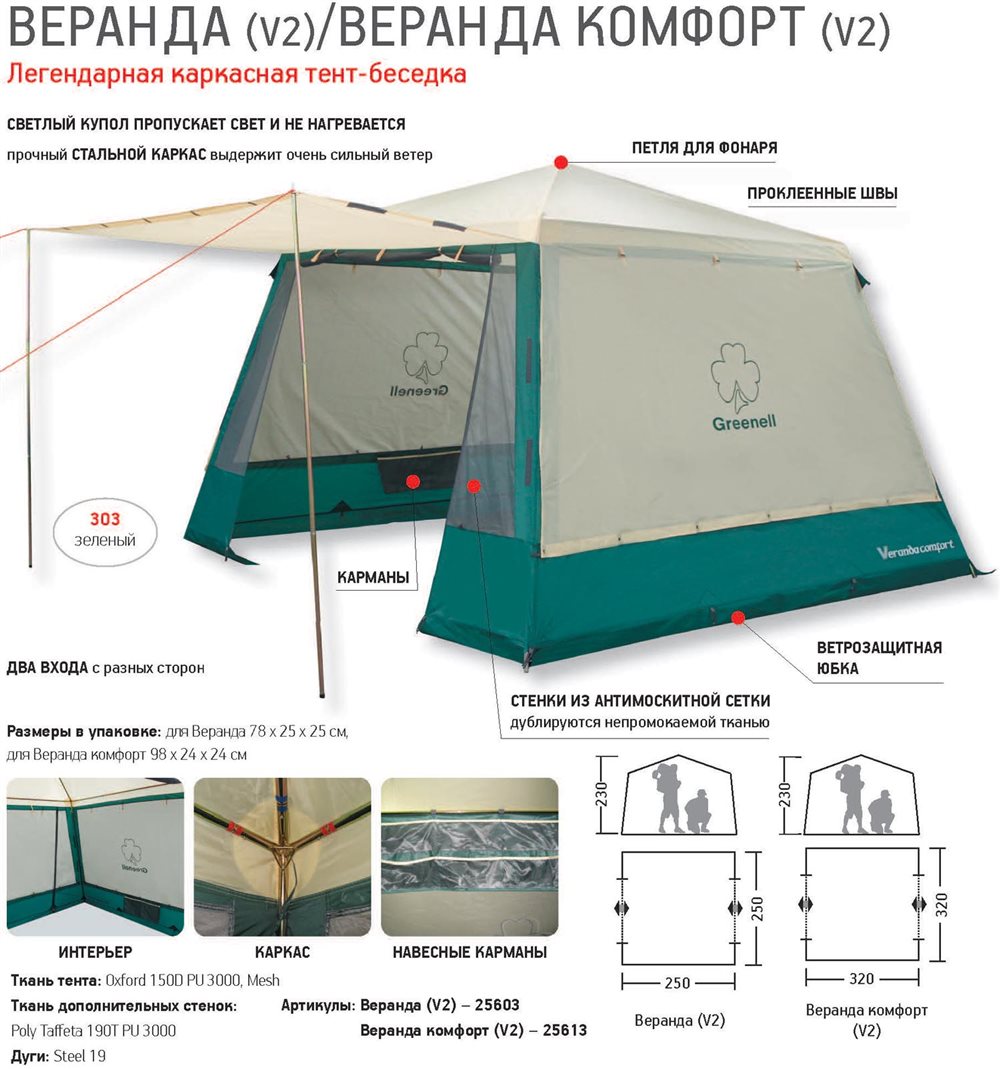 - Материал тентаТкань, из которой изготовлен тент палатки. Oxford 150D PU 3000, Mesh