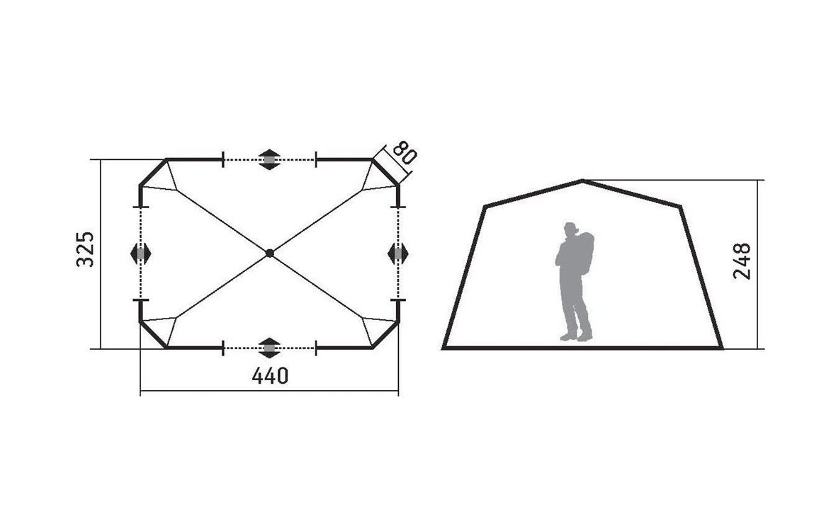 - Ветрозащитные юбкиНаличие ветро/снего защитных юбок у палатки. Да