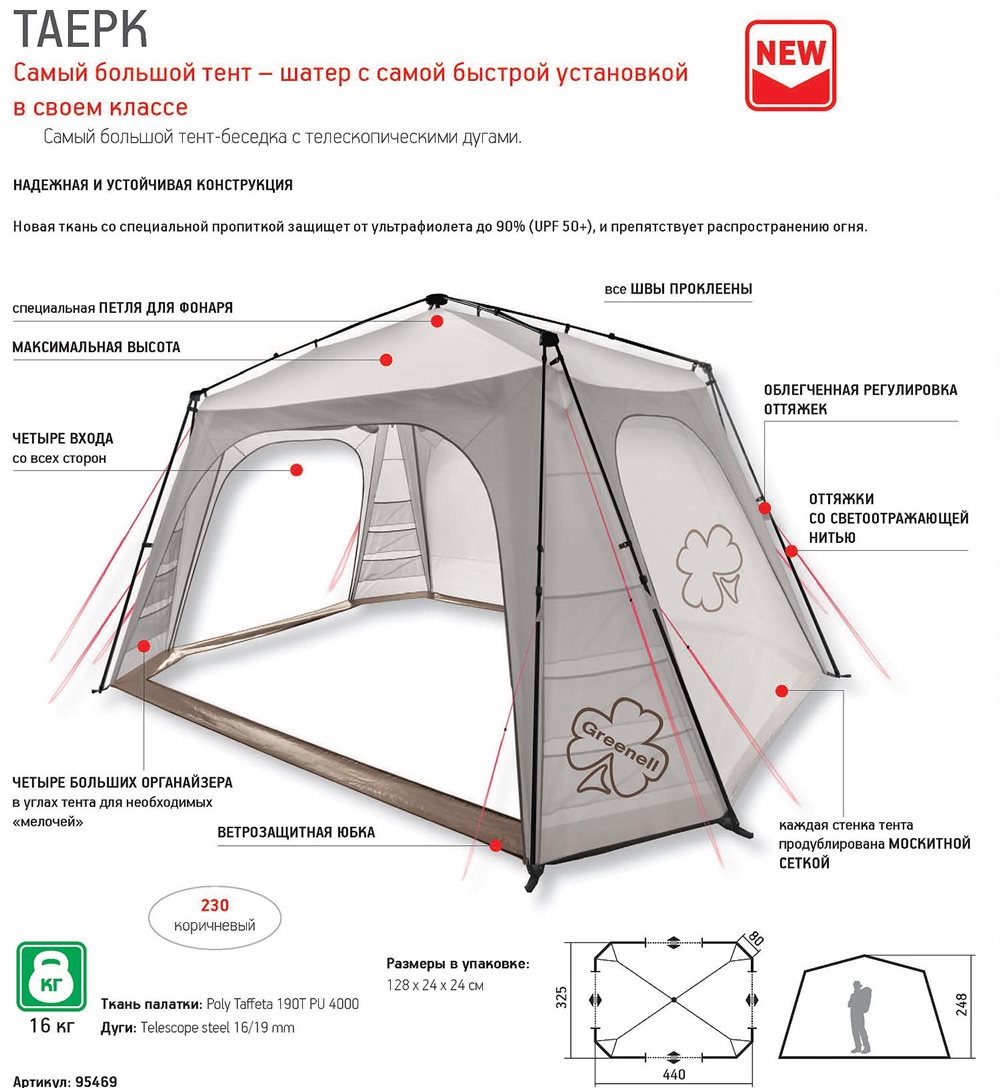 - Материал тентаТкань, из которой изготовлен тент палатки. Poly Taffeta 190T PU 4000