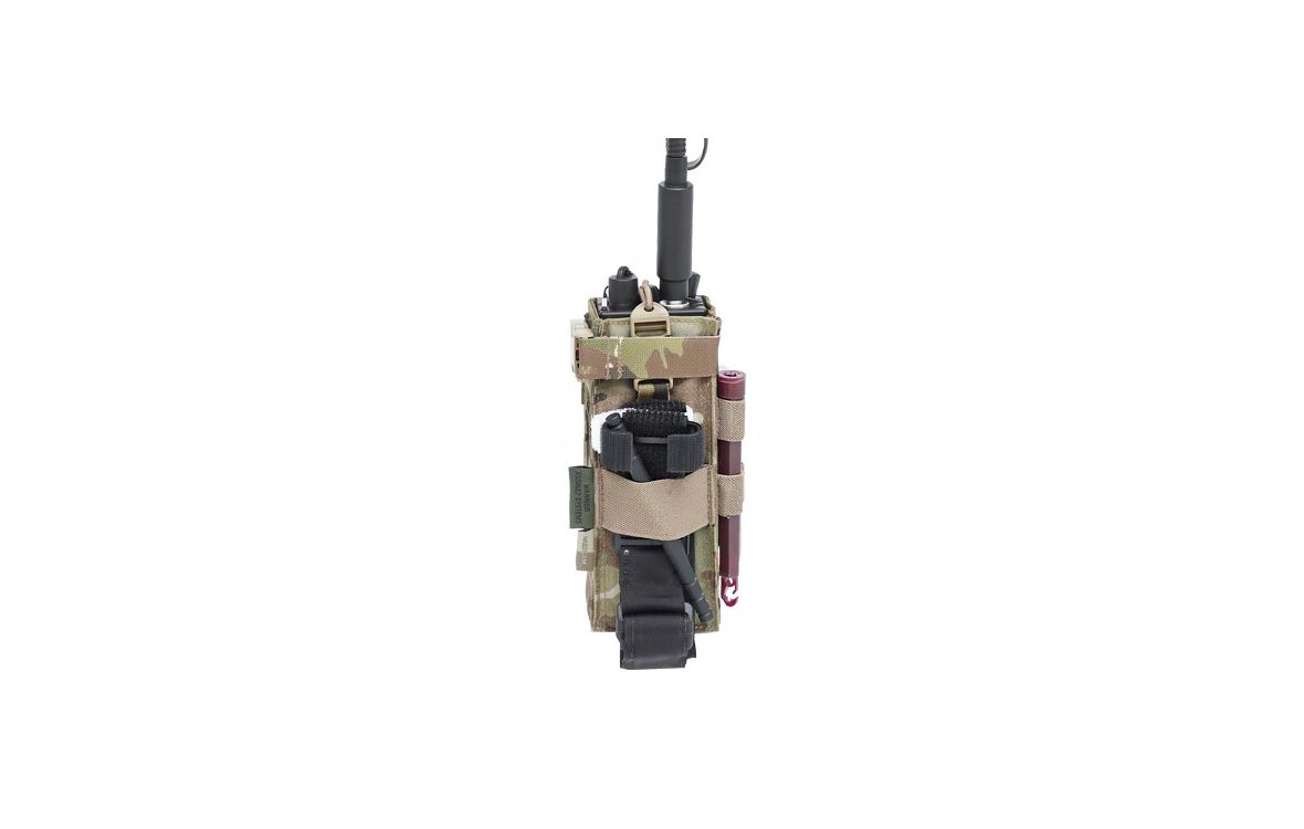 Рекомендуем размещать данный подсумок в месте, где Вы будете иметь возможность контролировать состояние Вашей радиостанции, но не в месте самой быстрой доступности. Например, сбоку слева на жилете. Или, если у Вас уже совсем нет места сбоку, и при этом Вы действуете группой то сзади слева, так чтобы Ваш напарник мог по Вашей просьбе контролировать состояние Вашей радиостанции.
