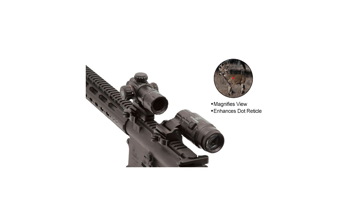 - УвeличeниeУвеличение (кратность) показывает во сколько раз (в угловой мере) изображение, видимое в прибор, больше видимого невооруженным взглядом. 3