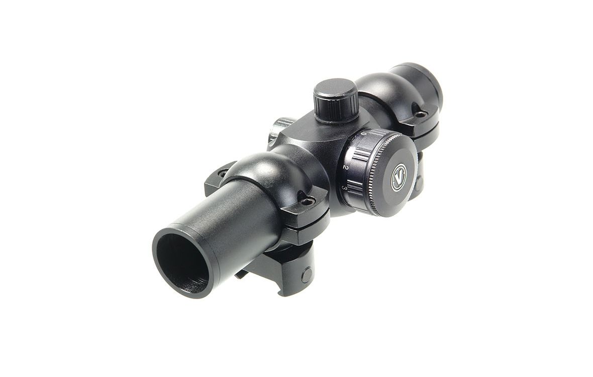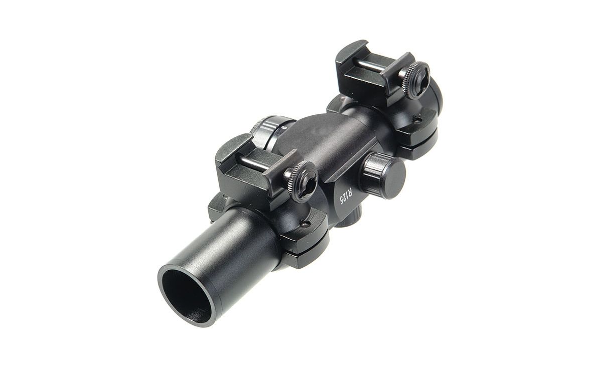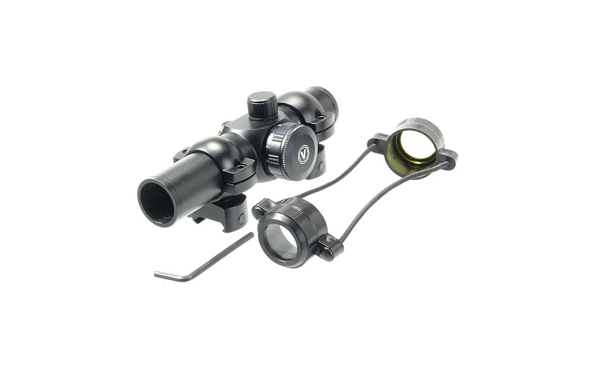 Коллиматорный прицел закрытого типа в корпусе диаметром 25,4 мм. Поставляется в комплекте с низкими посадочными кольцами.