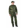 Рекомендуется для охранных структур. Состоит из куртки и брюк. Куртка прямого силуэта с центральной застежкой на молнию, отложным воротником. Оснащен нагрудными накладными карманами с клапанами на липучках, имеется карман на молнии для документов. На рукаве накладной карман с клапаном. Объем талии брюк регулируется эластичной лентой.