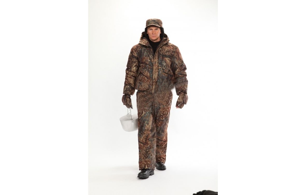 Камуфлированный универсальный костюм для охоты, рыбалки и активного отдыха при низких температурах. Состоит из укороченной куртки с капюшоном и полукомбинезона.