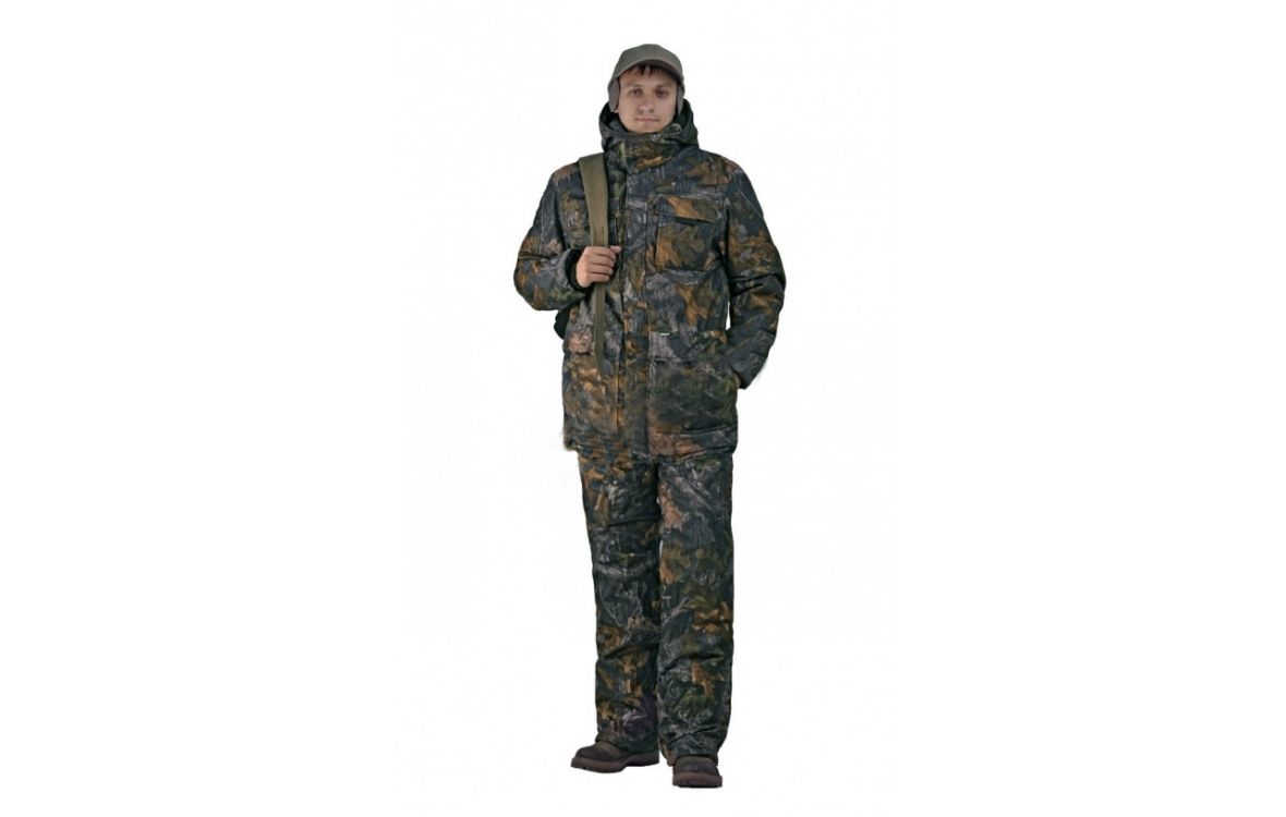 Камуфлированный универсальный костюм для охоты, рыбалки и активного отдыха при низких температурах. Состоит из укороченной куртки с капюшоном и полукомбинезона.