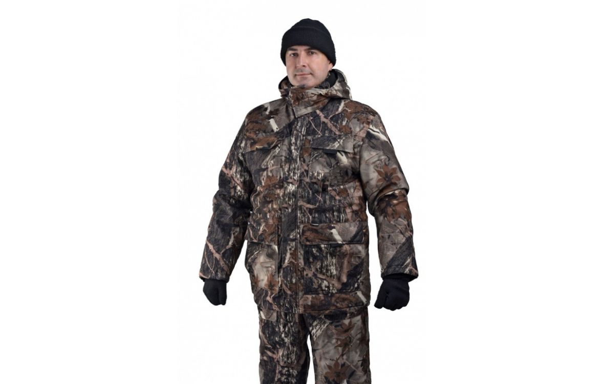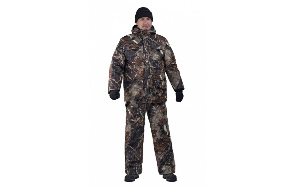 Камуфлированный универсальный костюм для охоты, рыбалки и активного отдыха при низких температурах. Состоит из удлиненной куртки и полукомбинезона.