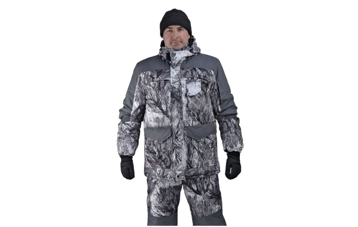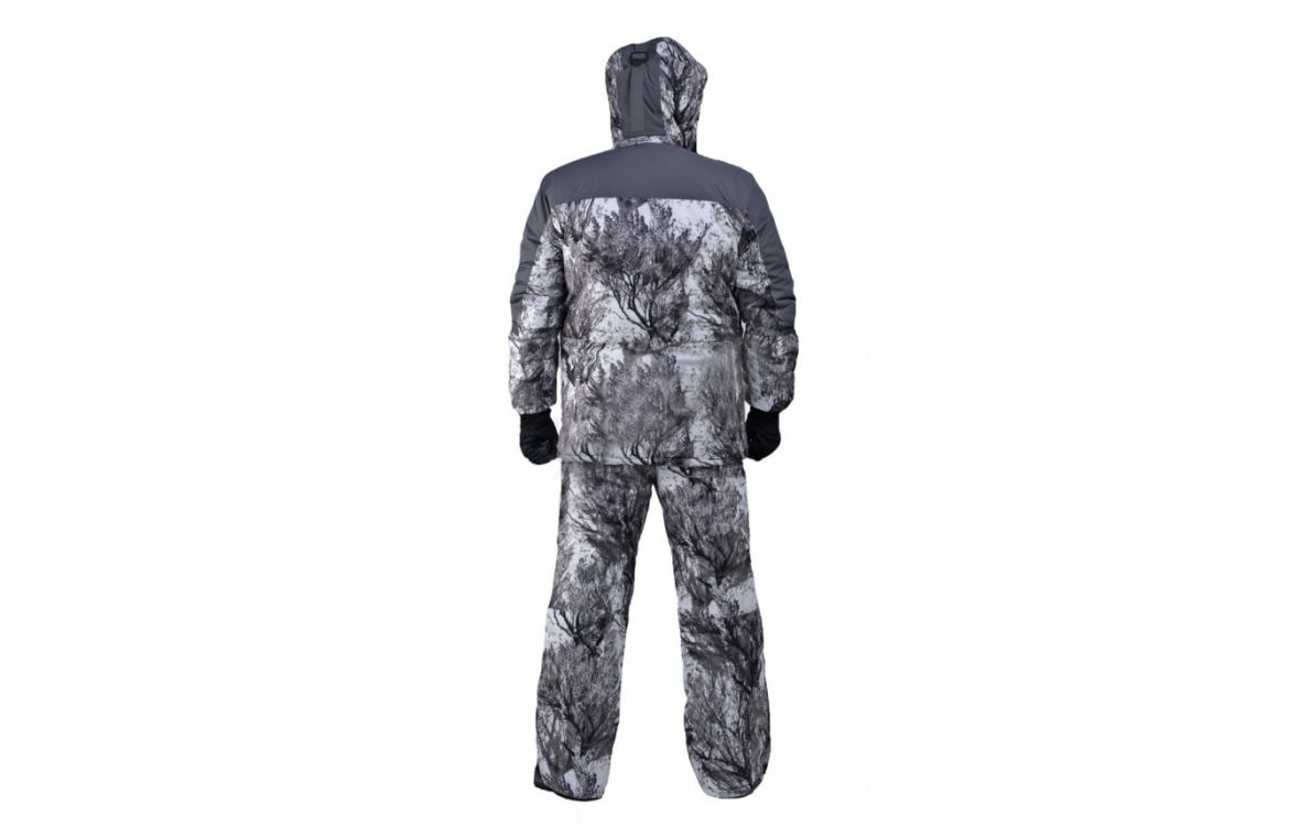Камуфлированный универсальный костюм для охоты, рыбалки и активного отдыха при низких температурах. Состоит из удлиненной куртки и полукомбинезона.