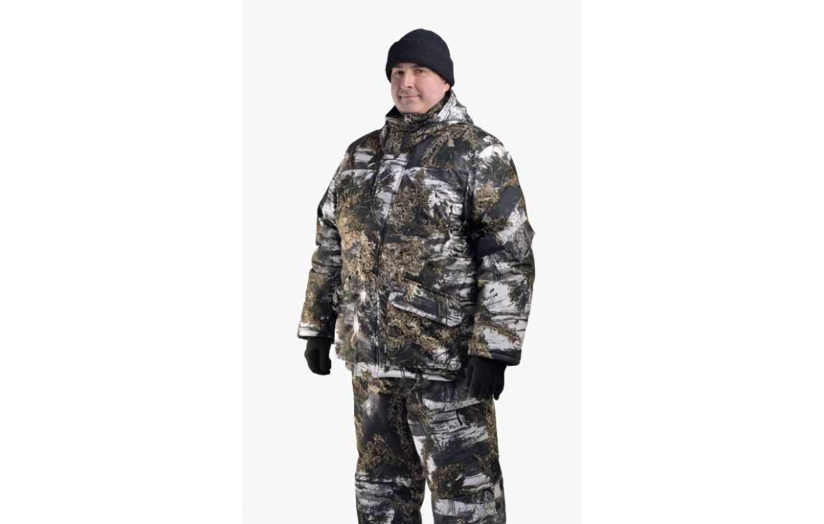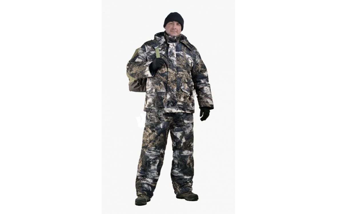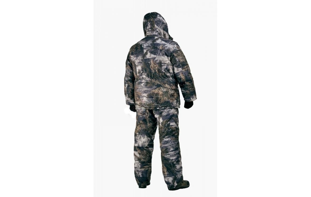 Камуфлированный универсальный костюм для охоты, рыбалки и активного отдыха при низких температурах. Не шуршит. Состоит из удлинненной куртки с капюшоном и полукомбинезона.