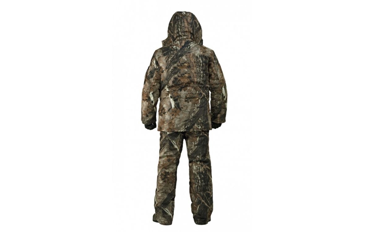 Камуфлированный универсальный костюм для охоты, рыбалки и активного отдыха при низких температурах. Не шуршит. Состоит из удлинненной куртки с капюшоном и полукомбинезона.