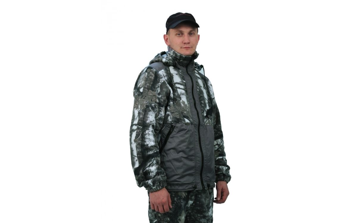 Куртка мужская прямого силуэта из флиса в комбинации с плащевой тканью. Длина изделия до линии бедер.