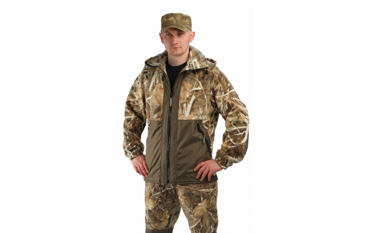 Куртка мужская прямого силуэта из флиса в комбинации с плащевой тканью. Длина изделия до линии бедер.