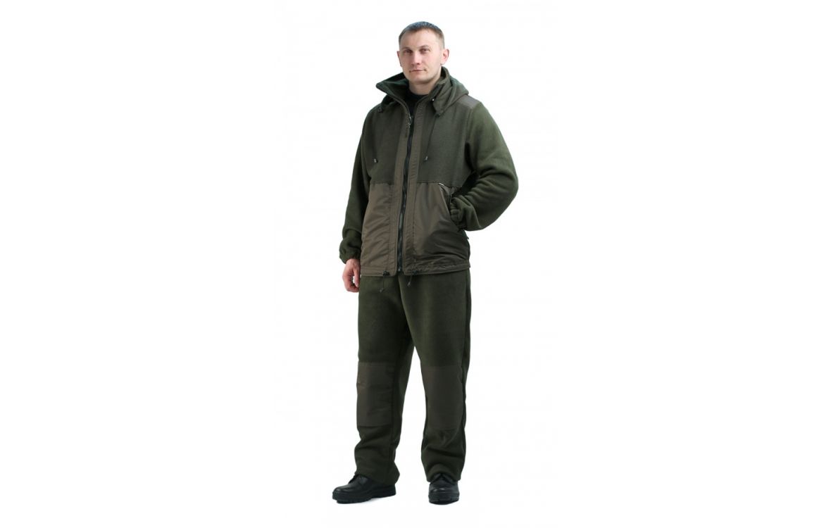 Куртка мужская прямого силуэта из флиса в комбинации с плащевой тканью. Длина изделия до линии бедер.