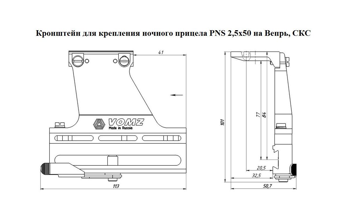 Основные ТТХ | Крепление ПНВ (плоскость) на «Вепрь» (ВОМЗ) |