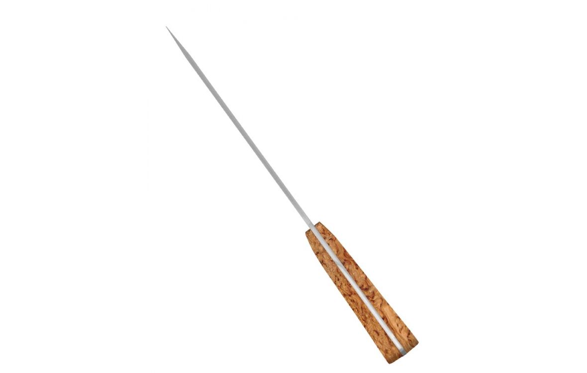 Пчак цельнометаллический (от узб. pichoq – нож) – традиционный узбекский нож. Отличительная особенность пчаков – это клинообразный в сечении, достаточно широкий клинок (значительно шире рукояти), рукоять, продолжающая линию обуха и соединяющаяся с клинком посредством больстера. Клинок может изготавливаться из различных сталей, как нержавеющей, так и дамасской. Форма острия у Пчака от Компании «АиР» называется «тугри» – то есть с прямым обухом. Вполне традиционен узкий дол «кома», идущий вдоль обуха с обеих сторон клинка. Рукоять достаточно узкая, ее головка имеет клювообразный изгиб – чакмок. Монтаж клинка накладной, неразборный. Пчак широко распространен по всей Средней Азии. Например, уйгуры считают, что у каждого уйгурского мужчины должен быть с собой пчак как нож повседневного ношения. В настоящее время пчаки идеально подходят для использования на кухне – для разделывания мяса, разрезания хлеба, фруктов, овощей, и, конечно же, сочных арбузов и дынь. Не требуется разрешение РОХ на приобретение, ношение и хранение.