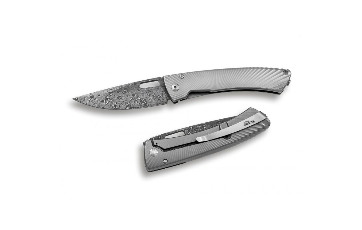 Купить Нож LionSteel серии TiSpine Damascus лезвие 85 мм дамаск, рукоять - титан, цвет серебристый по цене 27 460 ₽ в охотничьем магазине МОСОХОТА