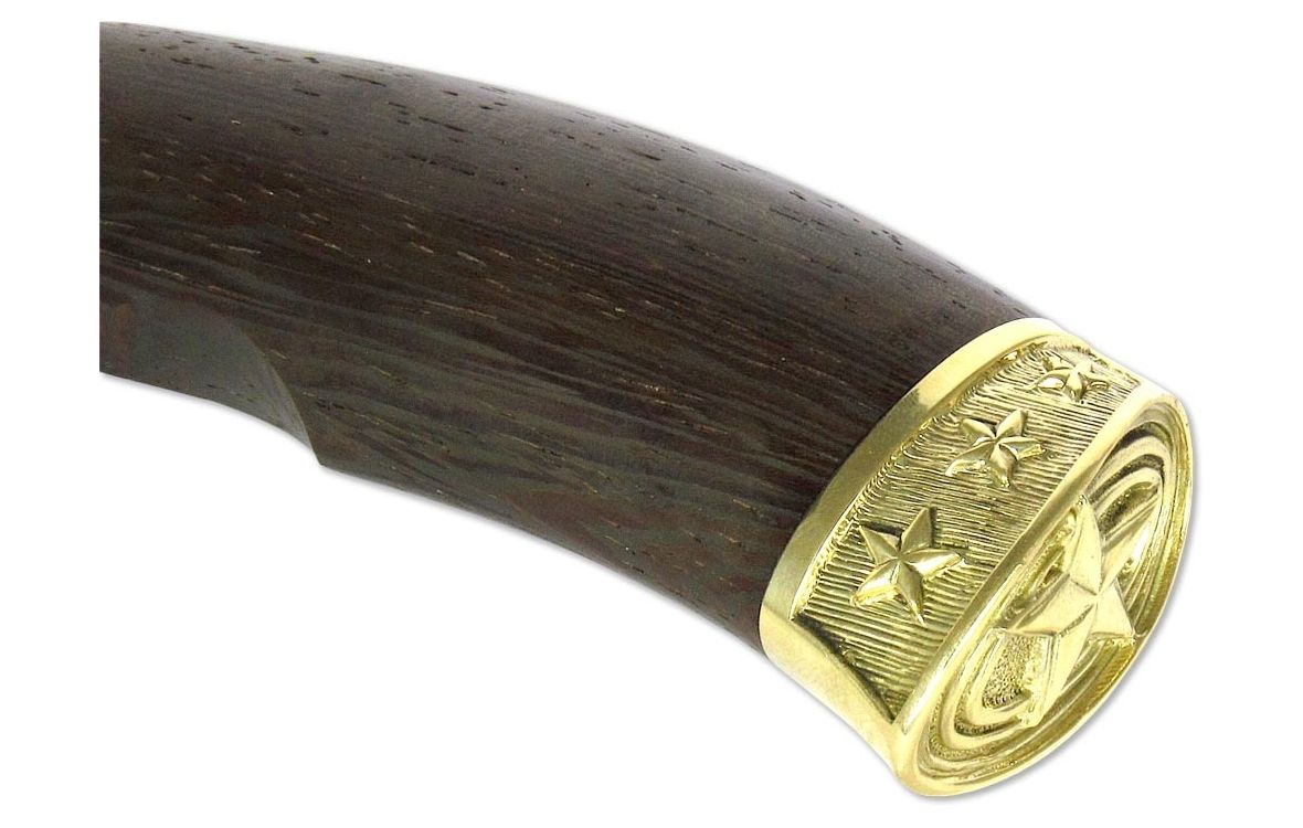 - рукоять из дерева венге украшена художественным латунным литьём в виде звезды советской армии;