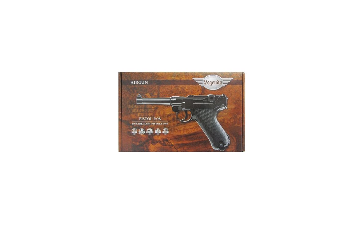 Оригинальный огнестрельный пистолет носил название «Pistole Parabellum P.08» и был принят на вооружение германской армии в августе 1908 года. Второе, не менее знаменитое название - "Люгер" - пистолет носил по имени разработчика - австрийца Георга Люгера. Для своего времени пистолет являлся передовой оружейной конструкцией с основным достоинством - высокой точностью стрельбы. Оборотной стороной медали оказалось очень трудоёмкое производство - при изготовлении "Парабеллума" выполнялось почти 800 отдельных операций, а при массе самого пистолета 870 гр. для производства требовалось около 6 кг. металла. После поражения Германии в Первой Мировой войне и до начала Второй Мировой "Люгер" выпускал целый ряд знаменитых компаний - на экспорт в США, Финляндию и для коммерческой продажи - пистолет был и остаётся популярен в том числе и как спортивное оружие, к примеру, в Швейцарии. В начале Второй мировой войны на смену P.08 пришел более новый и надёжный пистолет P38, но "Люгер" оставался основным оружием офицеров Вермахта. Предлагаемый пневматический пистолет P.08 производства Umarex является (умарекс парабеллум), насколько это возможно, точной копией огнестрельного варианта, в том числе и по весу. Пистолет не имеет подвижных частей, "блоубэка", изготовлен полностью из металлического сплава, за исключением накладок рукоятки. Приятная окраска серо- черного цвета пневматический пистолет люгер может, при желании, истираться от использования, что придаёт пистолету непередаваемый шарм раритета Второй Мировой. Отличительная особенность Umarex P.08 - исключительная экономичность. На одном баллоне CO2 можно отстрелять более 120 шариков, что означает как минимум шесть полных магазинов вместимостью 21 шарик BB. При этом экономичность, как не странно, идёт не в ущерб мощности - стандартная скорость выстрела составляет 125 метров в секунду. У P.08 невозможно регулировать прицельные приспособления, тем не менее многие считают его одним из самых точных пневматических пистолетов, использующих шарики BB. Приятно, что такую точную, в историческом смысле слова, красивую "реплику" знаменитого оружия можно приобрести по вполне демократичной цене.