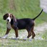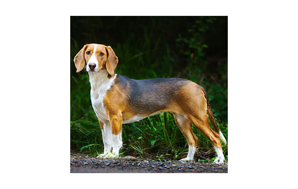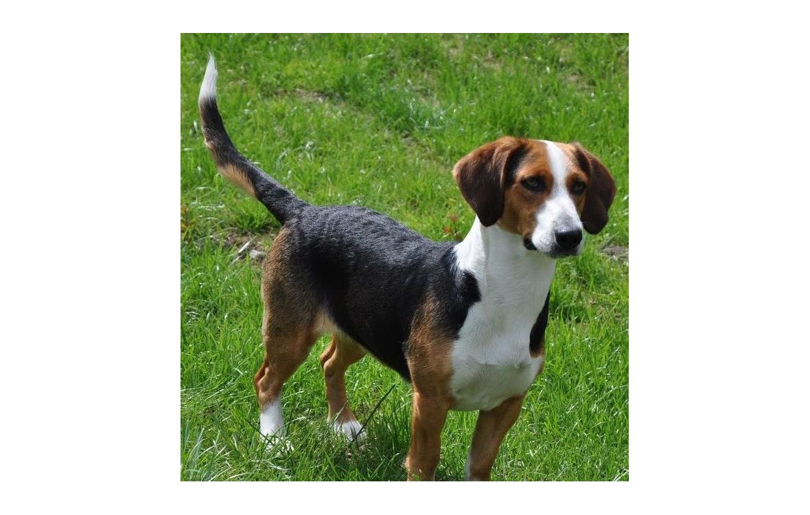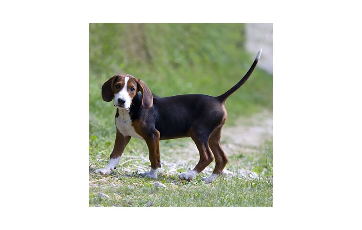 Выведена в Германии, близкими предками этой породы считаются ныне исчезнувшие вестфальская гончая и зауэрландский хольцбракк. Немецкая гончая работает по горячему и холодному следу молча или с голосом. Короткошерстная, невысокая гончая трехцветного окраса с крепким костяком. Очень сильная и выносливая собака с редкими охотничьими способностями. Высота в холке 40-53 см. Уши плотно прилегают к голове. Шерсть короткая, прилегающая. Эта гончая не знает устали на охоте, ее можно приучить подавать охотнику добычу. Домашний любимец. Несложный уход за шерстью.