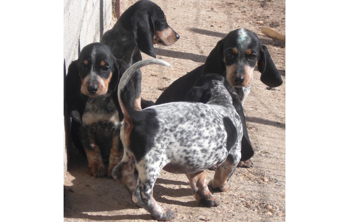 Выведена во Франции в 19 веке собаководом Аленом Бурбоном, вероятно, в результате отбора коротконогих мутантов голубой гасконской гончей, для охоты на волка. Стандарт был принят во Франции в конце 19 века. От длинноногих предков эта порода унаследовала окрас, форму головы, громкий лай, хорошее чутье и охотничьи качества. Голубой гасконский бассет - очень популярная во Франции порода, которую разводят и в других странах Европы. Красивая, крупная собака (рост 34-42 см, вес 16-18 кг). Морда длинная. Глаза темные, с печальным выражением, нижнее веко иногда сыровато. Мочка носа крупная, черная. Уши тонкие, висячие, поставлены ниже уровня глаз, длина их равна длине морды. Хвост довольно длинный, держится не выше линии спины. Шерсть короткая, жесткая. Окрас голубой с черными пятнами, но может быть черный чепрак. На щеках, над глазами, морде, внутри ушей и на лапах - рыжие отметины. Ласковая, умная, покладистая собака, легко дрессируется, ценится как хороший компаньон. Шерсть не требует ухода. Собака нуждается в продолжительных прогулках, чувствительна к холоду.