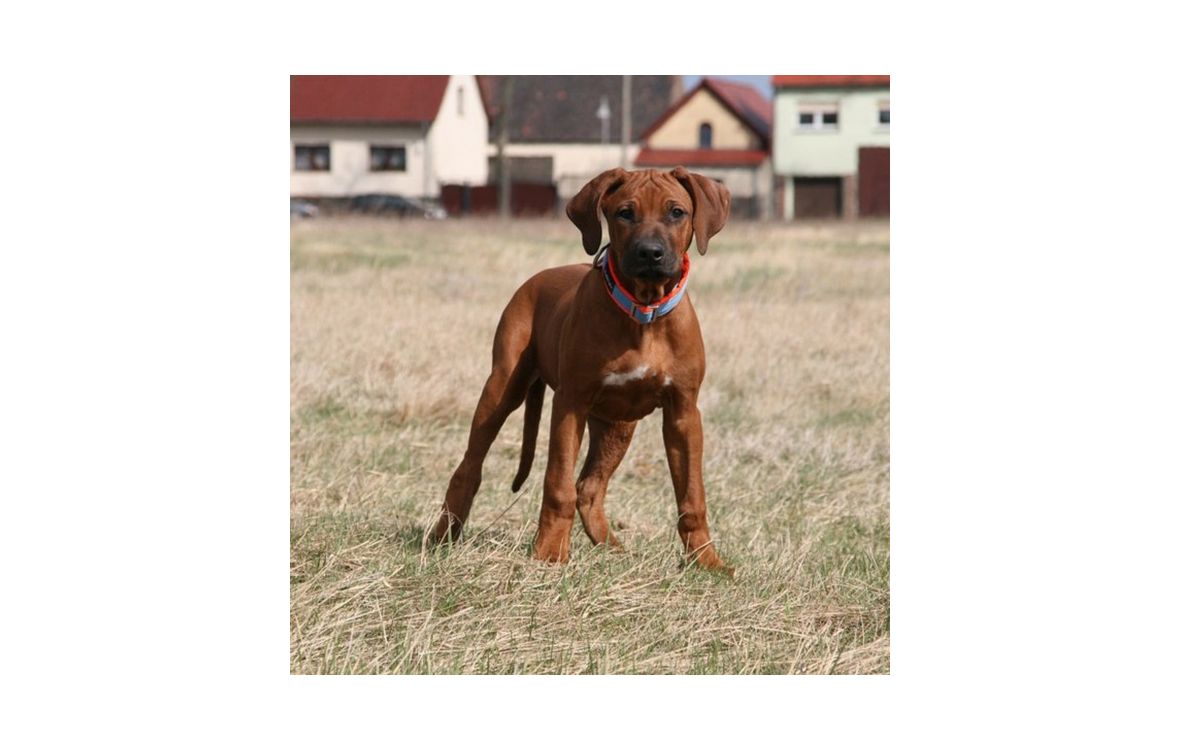 Выведена в Южной Африке для охоты на львов в 19 веке. Риджбека иначе называют львиной собакой за его способность загонять льва своими постоянными атаками до изнеможения. Разводить эту породу собак начали после 1920, хотя до этого столетиями существовали собаки с отличительной особенностью - гребнем на спине из волос, растущих в противоположном направлении (от хвоста к голове), которую риджбек и унаследовал. Этот гребень (ридж) не встречается ни у одной другой породы собак. Риджбек - красивая, мускулистая собака (рост в холке 61-69 см, вес 28-34 кг), гармоничного сложения, обладающая выносливостью в сочетании с резвостью. Голова длинная, с плоским широким лбом. Кожа на лбу собрана в морщинки. Мочка носа черная или коричневая, сочетающаяся с окрасом собаки. Глаза при черной мочке носа - черные, а при коричневой - янтарные. Хвост толстый у основания, суживающийся к концу, не слишком высоко посажен, держится с небольшим изгибом кверху. Шерсть короткая, гладкая. Окрас от светло-пшеничного до рыже-пшеничного. Голова, тело, ноги и хвост должны быть сплошного окраса. Допускается небольшое пятнышко на груди. Это очень спокойная, послушная, немного ленивая собака. Редко лает, любит детей, привязчива. Защитит вас и ваше имущество. Нуждается в регулярных и длительных совместных прогулках. Это рослая, несколько флегматичная собака мгновенно превращается в летящую стрелу, стоит ей что-то почуять. Пригодна для сторожевой и караульной службы. Шерсть следует раз в день чистить специальной рукавицей.