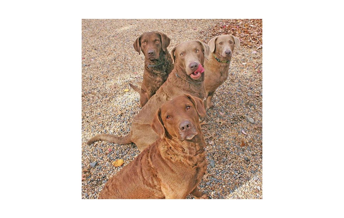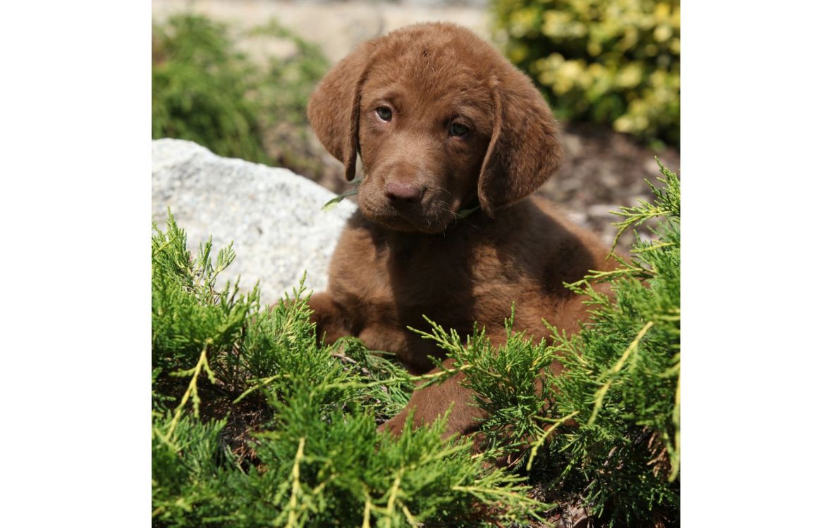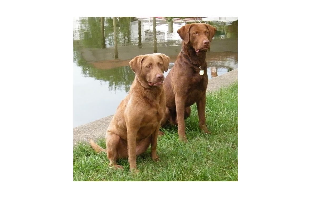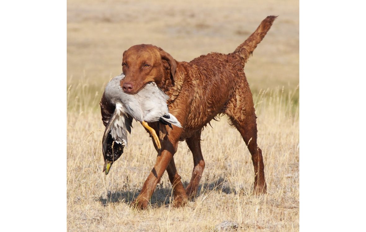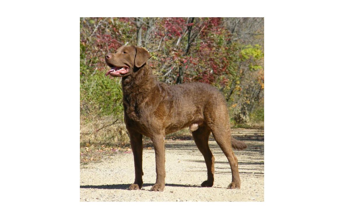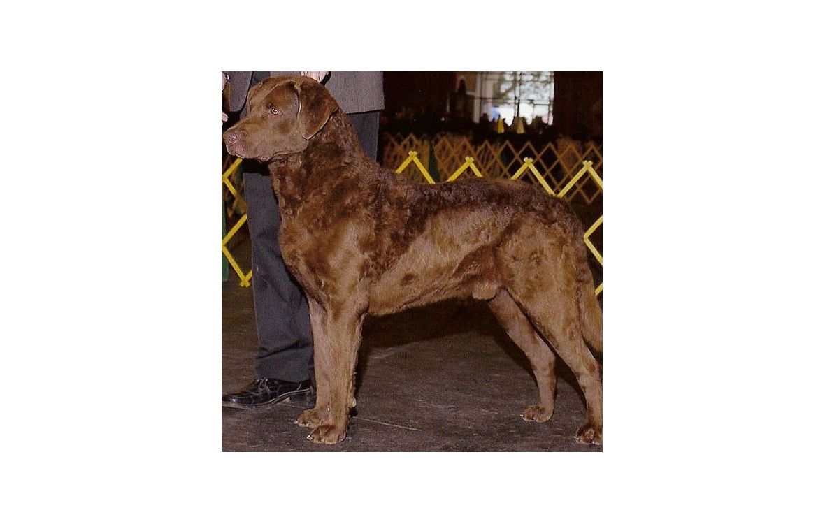Выведена в США (штат Мэриленд) в конце 19 веке на побережье Чесапикского залива (отсюда название) - в краю уток. История происхождения этой породы очень романтична. В 1807 английский бриг, севший на мель у берегов штата Мэриленд был спасен экипажем американского судна. На борту брига находились два щенка, которых везли с острова Ньюфаундленд. Их подарили капитану Джорджу Ло, спасшего их судно. Этих двух собак скрестили с желтыми и желтовато-коричневыми кунхаундами для придания большей скорости. Чесапик-бей-ретривер был выведен исключительно для охоты на дикую утку, распространен в США и Канаде, встречается в европейских странах. Мощная, крепкая, гармонично сложенная собака. Высота в холке 53-66 см, вес 25-34 кг. Голова с широким круглым черепом и короткой суживающейся мордой. Глаза небольшие, широко расставленные, светло-желтые. Мочка носа средней величины, цвет в тон окраса. Уши маленькие, высоко поставленные, свободно свисают. Хвост довольно толстый у основания и суживающийся к концу, иногда с небольшим подвесом. Шерсть короткая, густая, немного волнистая на плечах, холке, пояснице и крупе, с густым мягким подшерстком. Окрас: от темно-коричневого до цвета пожухлой травы. Смелая, сильная, сообразительная собака с жизнерадостным характером. Несколько упрям и труден в дрессировке, нужна твердая и умелая рука хозяина. Предан семье, особенно детям хозяина. Нуждается в длительных прогулках и физических нагрузках. Шерсть необходимо чистить щеткой.