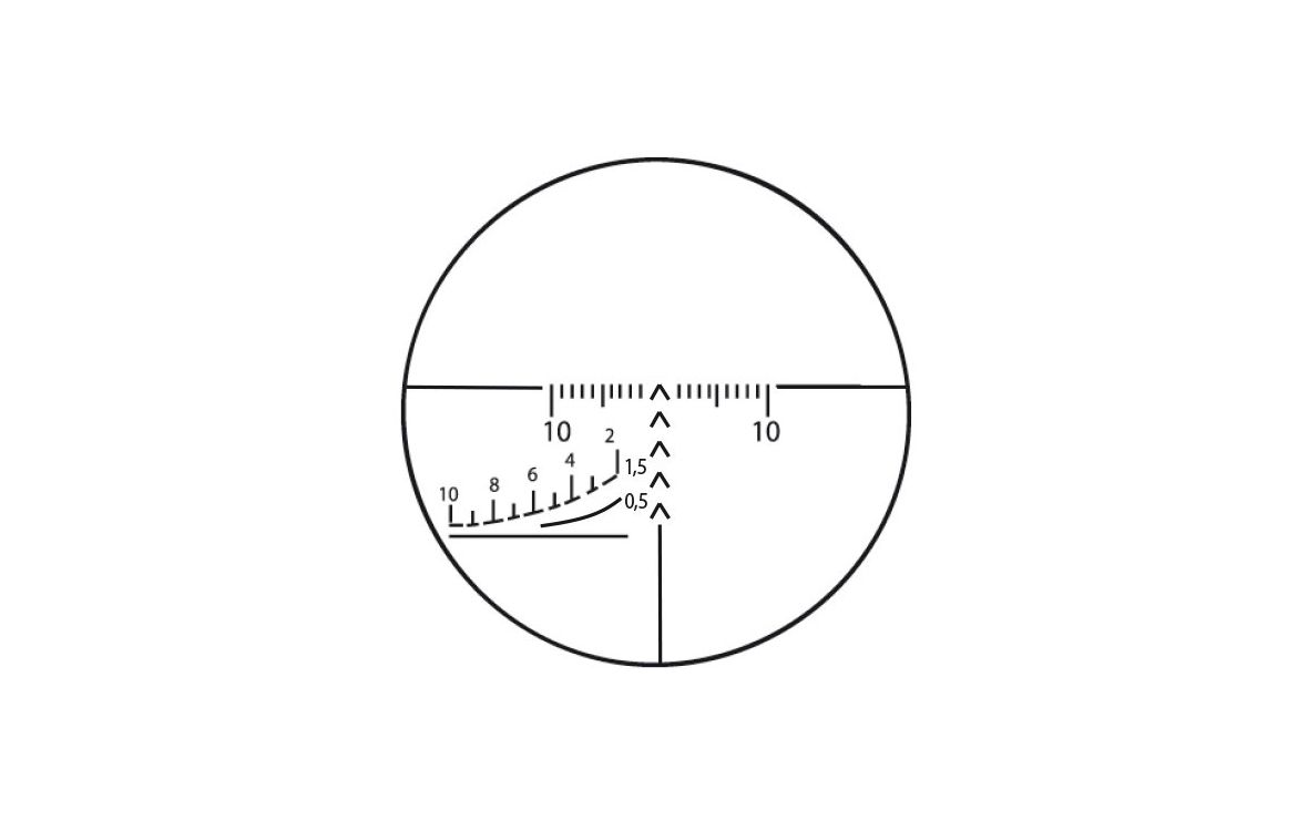 - Сетка ПСО (I фокальная плоскость) с подсветкой красного цвета, ростовая дальномерная шкала 1,5 / 1000