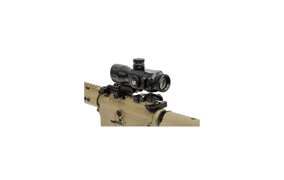 Двунаправленный кронштейн. Прибор поставляется с установленным креплением на Weaver, фиксируется на планке с помощью винтов (в комплекте). Кронштейн двунаправленный, с выносом, что позволяет выбирать оптимальное положение для прицела и коррелировать удаление выходного зрачка, увеличивая или уменьшая базовое расстояние в 58 мм.