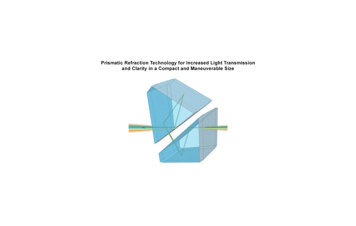 Просветлённая призменная оптика. Вместо светодиода и отражательной линзы используется призменная оборачивающая система. Без ущерба для качества оптики, система призм делает корпус в 1,5-2 раза короче, чем у аналогичных линзовых прицелов. Для сравнения: длина Prismatic 4x32 T4 Mil-Dot (SCP-T4IEMDQ) —142 мм, а длина Leapers True Hunter Classic 4x32 (SCP-U432FW) – 310 мм.