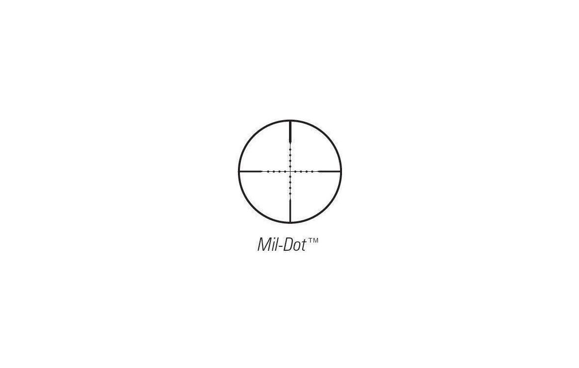 Cетка Mil-Dot (Мил Дот) расположена в фокальной плоскости окуляра (SFP), не меняет размеры при смене кратности, не затрудняет обзор и позволяет вносить вертикальные и горизонтальные поправки. Угловое расстояние между соседними точками строго соответствует 1 милу при 9x. Барабанчики выверки закрываются крышечками на резьбе. Вращаются с чёткими и и достаточно громкими щелчками (1 клик — 7 мм/100м), так что ориентироваться можно на слух и на ощупь.