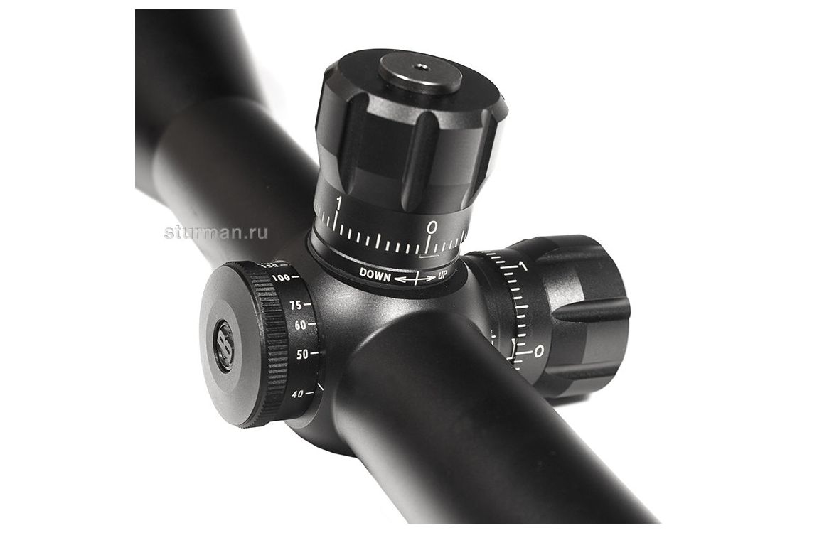 Открытые тактические барабанчики выверки с системой блокировки можно поворачивать «на слух», ориентируясь на щелчки (1 щелчок = 1 клик). Предусмотрена возможность сброса настроек на «ноль» после пристрелки.