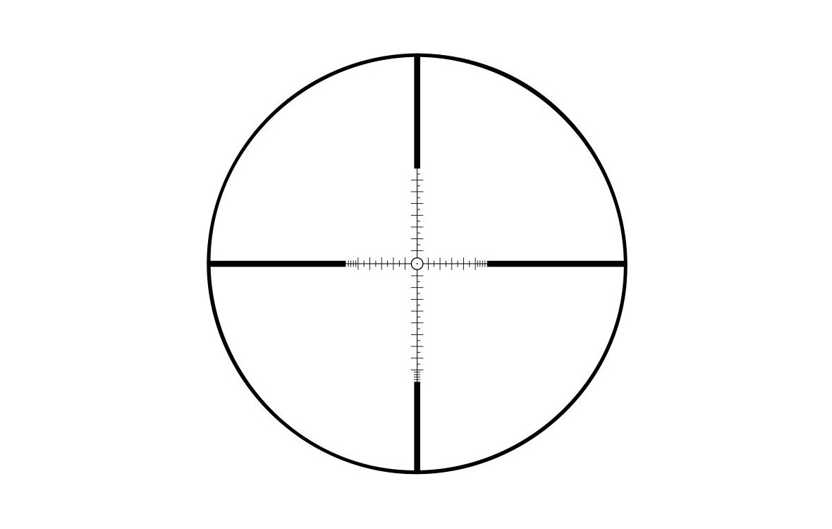 Модель оснащена сеткой BTR-Mil, расположенной в первой фокальной плоскости (угловые размеры сохраняются при любой кратности). Тонкое перекрестье имеет оригинальную разметку: