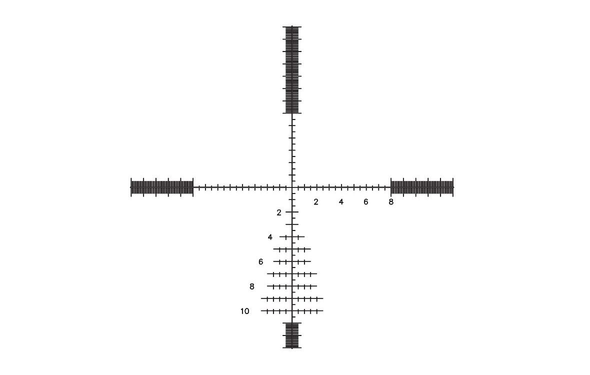 Баллистическая етка G2DMR находится в спервой фокальной плоскости, т. е. сохраняет угловые размеры на любой кратности. Горизонтальная разметка состоит из 8 меток 1 Mil с каждой стороны, с промежуточными метками 0,5 Mil и по 5 меток 1 Mil с промежуточными метками 0,1 Mil. Разметка верхней части сетки состоит из 6 меток Mil с промежуточными метками 0,5 Mil и 7 меток Mil с промежуточными метками 0,1 Mil. Нижняя часть сетки имеет дополнительные горизонтальные метки. Сетка позволяет вводить высокоточные горизонтальные и вертикальные поправки, определять дистанции до объектов и их размеры.
