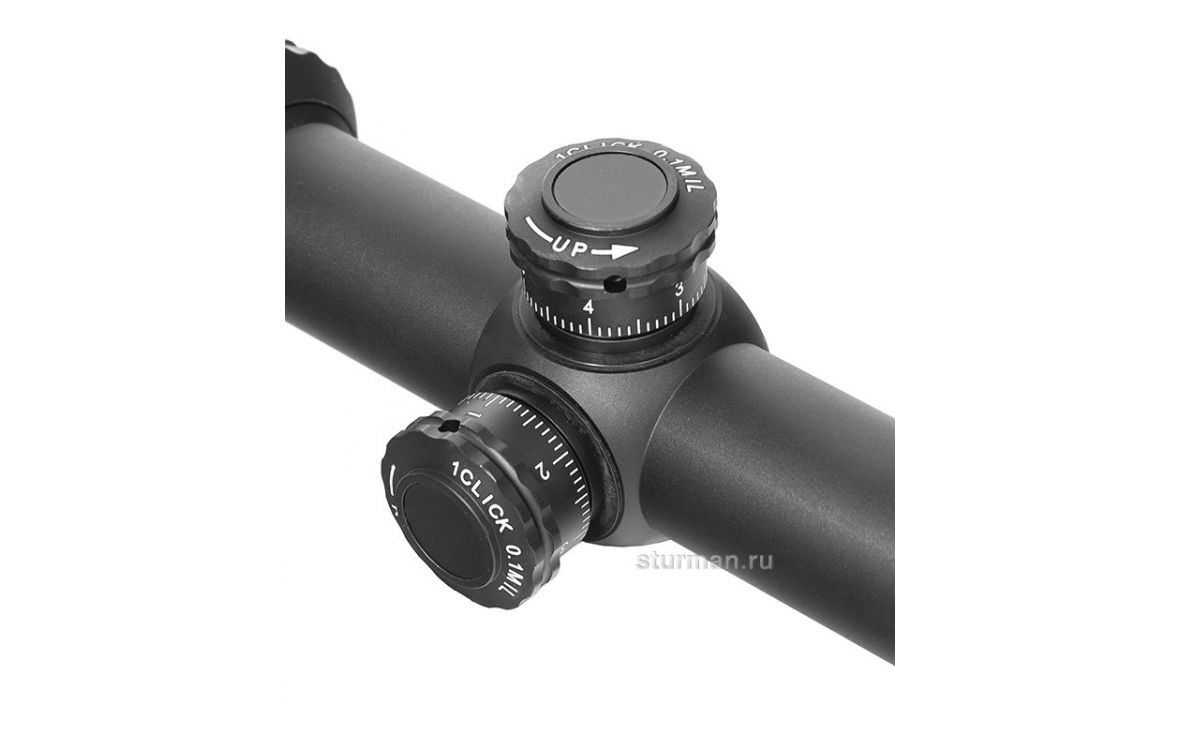 Открытые тактические барабанчики с шагом 0,1 Mil и четкими кликами удобны для быстрого введения поправок даже руками в перчатках. После пристрелки барабанчики можно выставить на новый "ноль", открутив три стопорных винта торцевым ключом, входящим в комплект поставки.