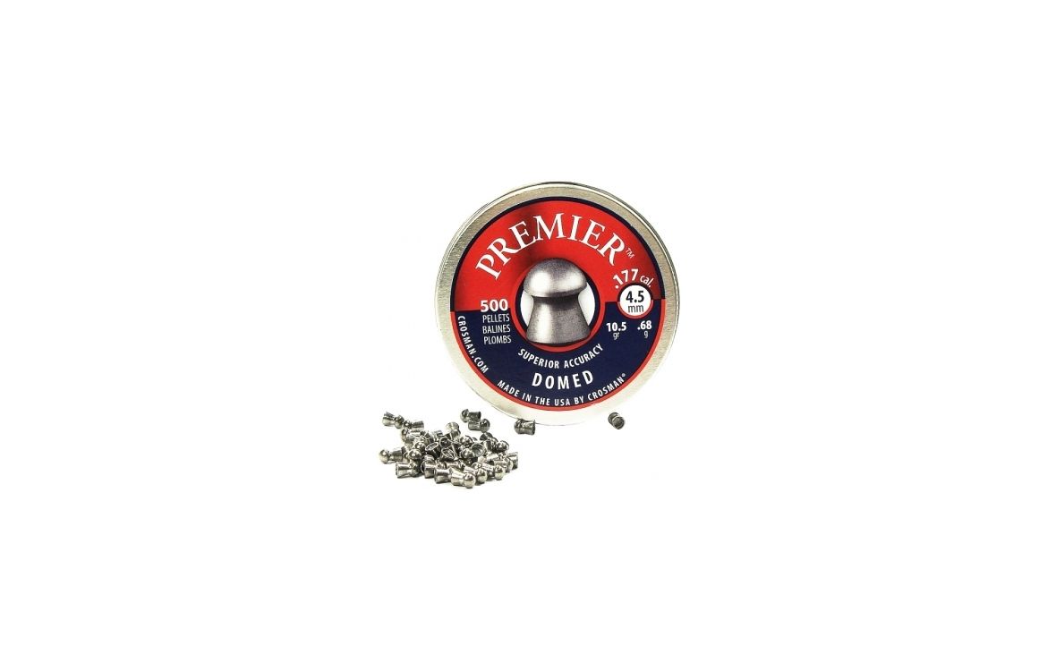 Пули пневматические Crosman Domed 10,5 гран (0.68 грамм) 4,5 мм (500 шт). Длина пули 6,8 мм. Обладают наименьшим аэродинамическим сопротивлением. Лучше всего crosman premier domed подходят для стрельбы на длинные дистанции, и следовательно охоты. Лучшим представителем во всем мире считается Crosman Domed Premier пули 10.5 гран (Crosman Premier)