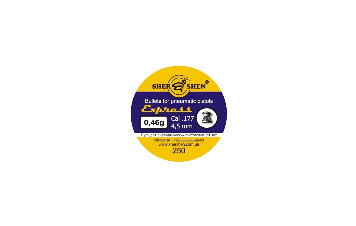 Пули пневматические DS Shershen Express. Калибр 4.5мм (177).Вес одной пули 0.46 грамм. Количество пуль в одной банке 250штук. Пули DS Shershen Express предназначены как для пневматических пистолетов так и для винтовок.Производитель Украина