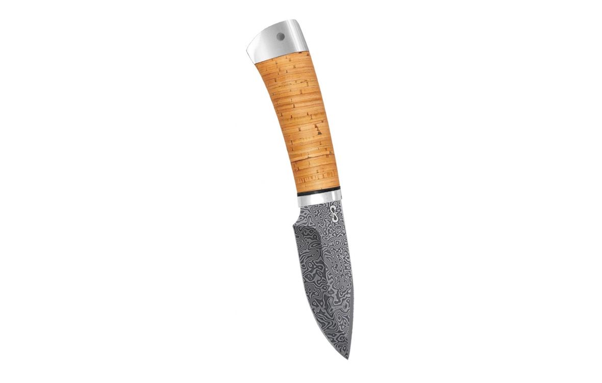 Небольшой универсальный, очень легкий и прочный нож с широким клинком. Клинок имеет вогнутые линзовидные спуски от середины ширины клинка. При толщине обуха в 2,4 мм имеет широкую голомень, что придает ему дополнительную прочность. Удобная форма рукояти позволяет уверенно работать ножом. Монтаж клинка сквозной, неразборный. Новосибирские охотники давно полюбили этот небольшой нож и утверждают, что именно им разделывают добытого медведя.
