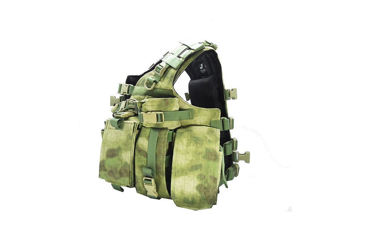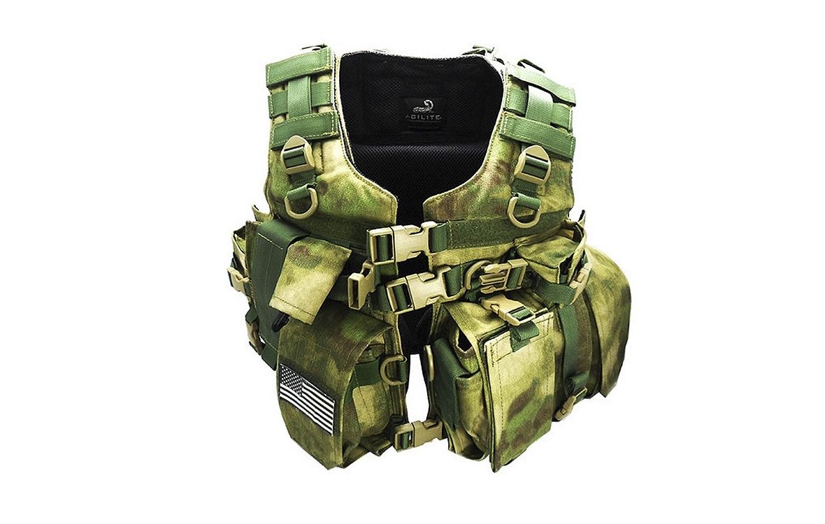 Тактический разгрузочный жилет может переносить до 12 тридцатизарядных магазинов к М4 и включает крепление для бинокля/очков ПНВ, вытяжную полосу ткани для хранения батареек, ножны для 18 сантиметрового ножа, карман для компаса и карманы для хранения радиокодов, химсвета, компаса и многого другого.